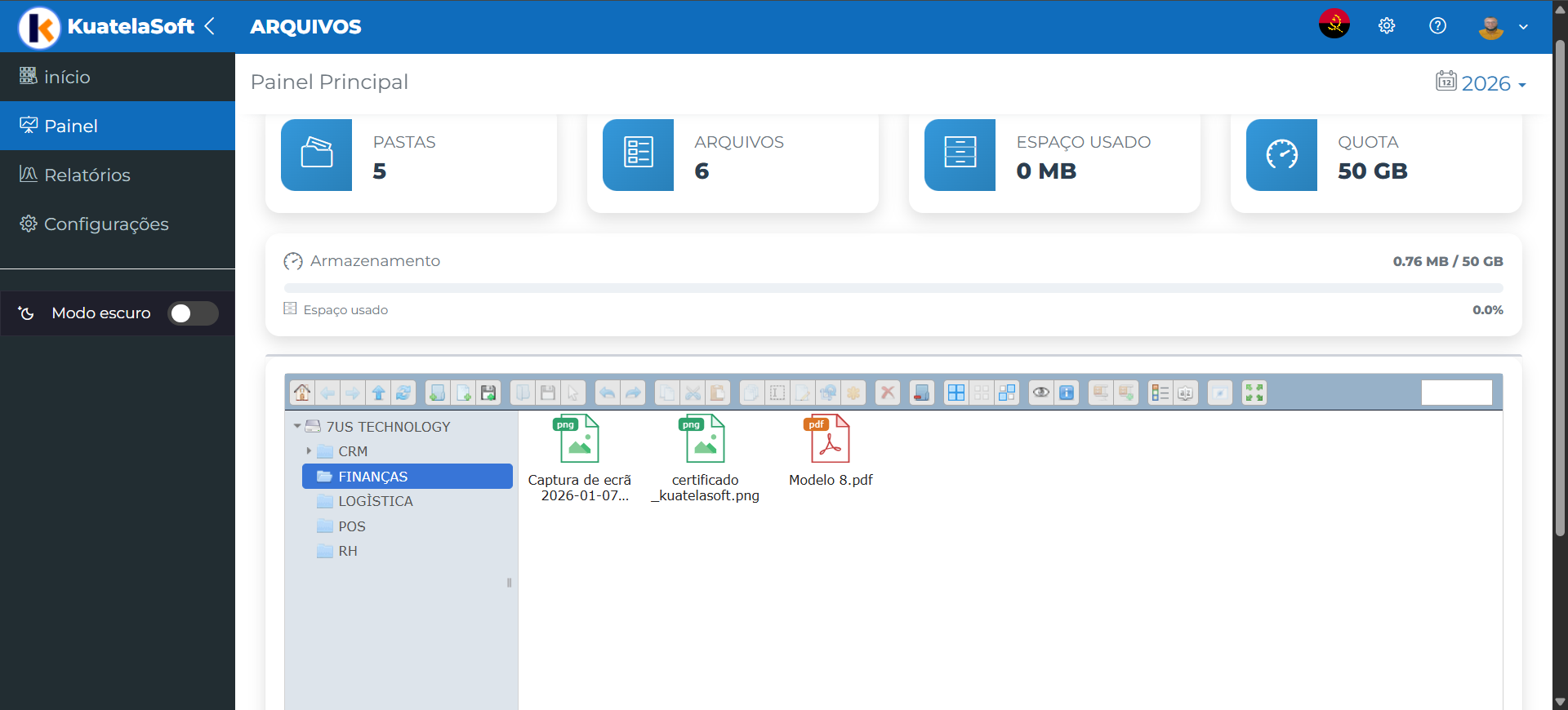 O KuatelaSoft – Gestão de Arquivos e Documentos é uma solução completa para o controlo, organização, armazenamento e segurança da informação documental da sua empresa, garantindo maior eficiência, conformidade legal e acesso rápido aos dados.