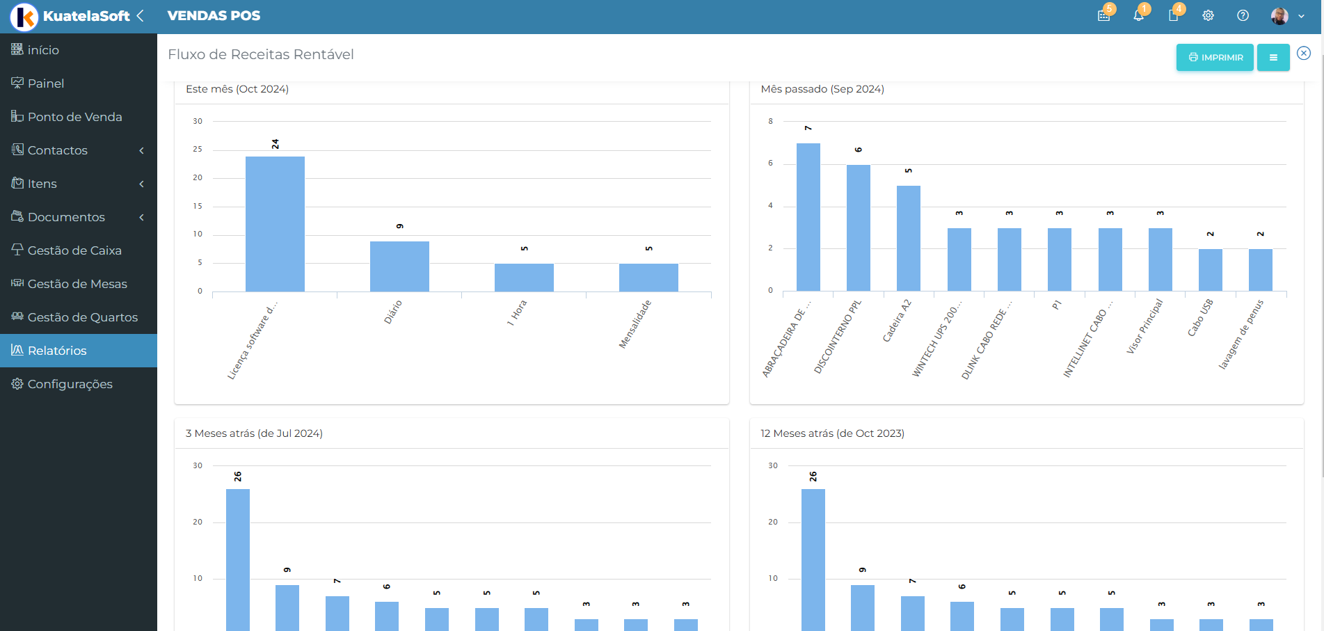 Acompanhe diariamente, mensalmente e anualmente cada actividade do seu negócio.